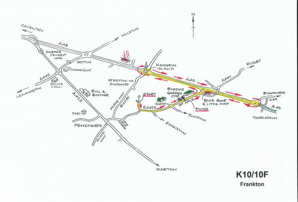 At M45 island at Thurlaston encircle island and retrace along A45.